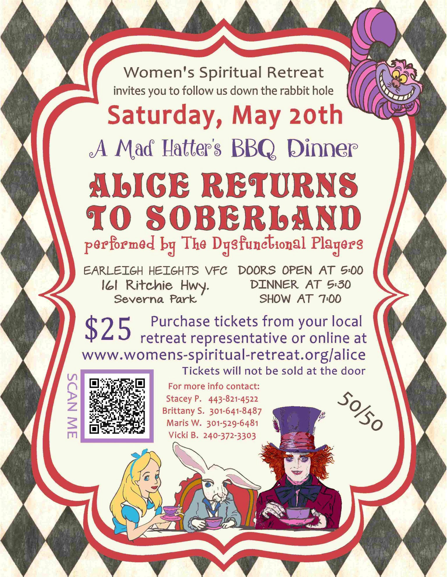 Dysfunctional Players presents an encore performance of, “Alice Returns to Soberland,” a recovery play at Earleigh Heights Fire Department in Severna Park on Saturday, May 20th, 2023 at 7:00pm.