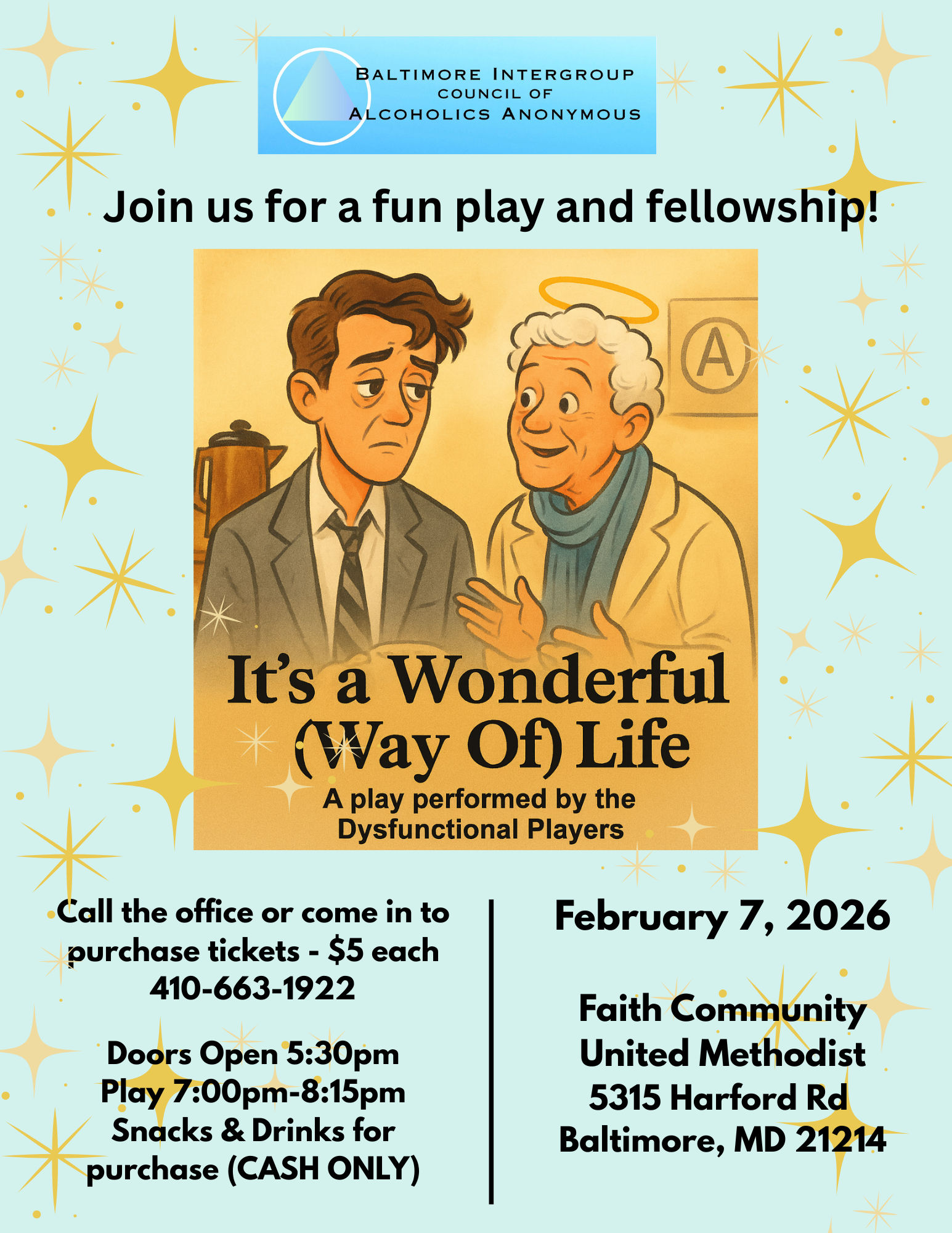 Dysfunctional Players presents an encore performance of, “Its A Wonderful (way of) Life,” a recovery play at Faith UMC on Harford Rd in Baltimore on